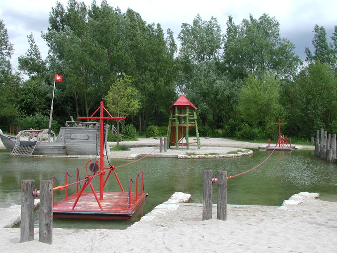 Ein idealer Ort für Kinder und Erwachsene, um in der freien Natur zu spielen und sich auszutoben. Auf dem ehemaligen Gelände der Landesgartenschau befinden sich Schiffe, Flösse und Hügel zum erkunden. Genug Platz zum Rasten und ein Kiosk sind vorhanden.